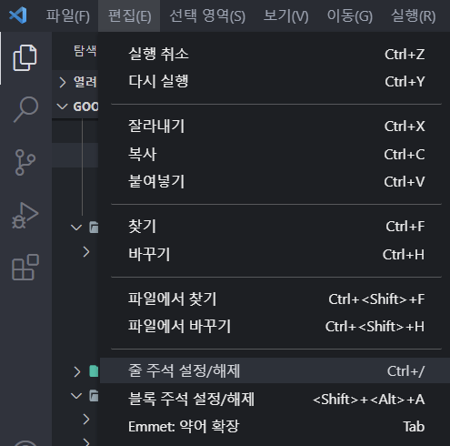 1. 혹시나 VS Code의 설정을 잘못 수정하여 단축키가 변경됬는지 확인한다.