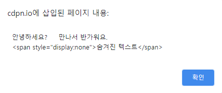 또한, 'display:none' 스타일이 적용된 '숨겨진 텍스트' 문자열도 그대로 출력되는 것을 확인 할 수 있습니다.