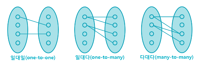 우선 테이블간의 관계에 대해 간단히 알아보면 1:1, 1:N, N:M(여러개랑 여러개)의 관계들이 있다.